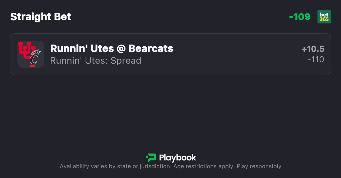 - Utah vs Cincinnati spread: Cincinnati -10.5