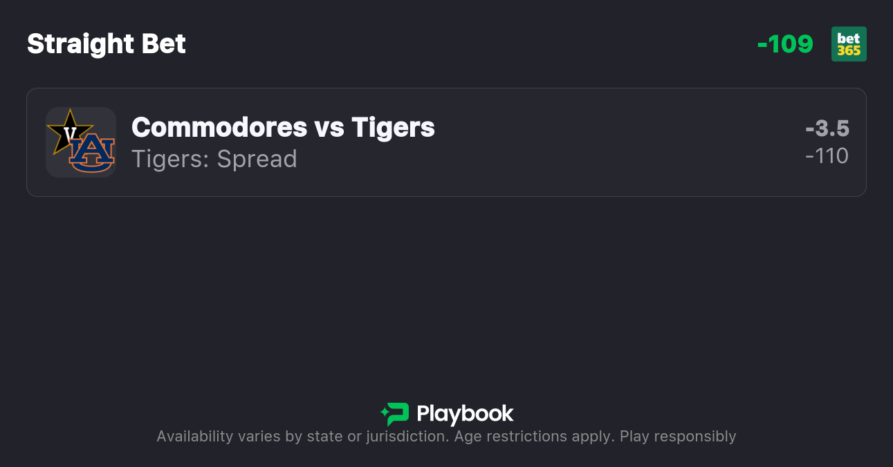 - Vanderbilt vs Auburn spread: Auburn -3.5
