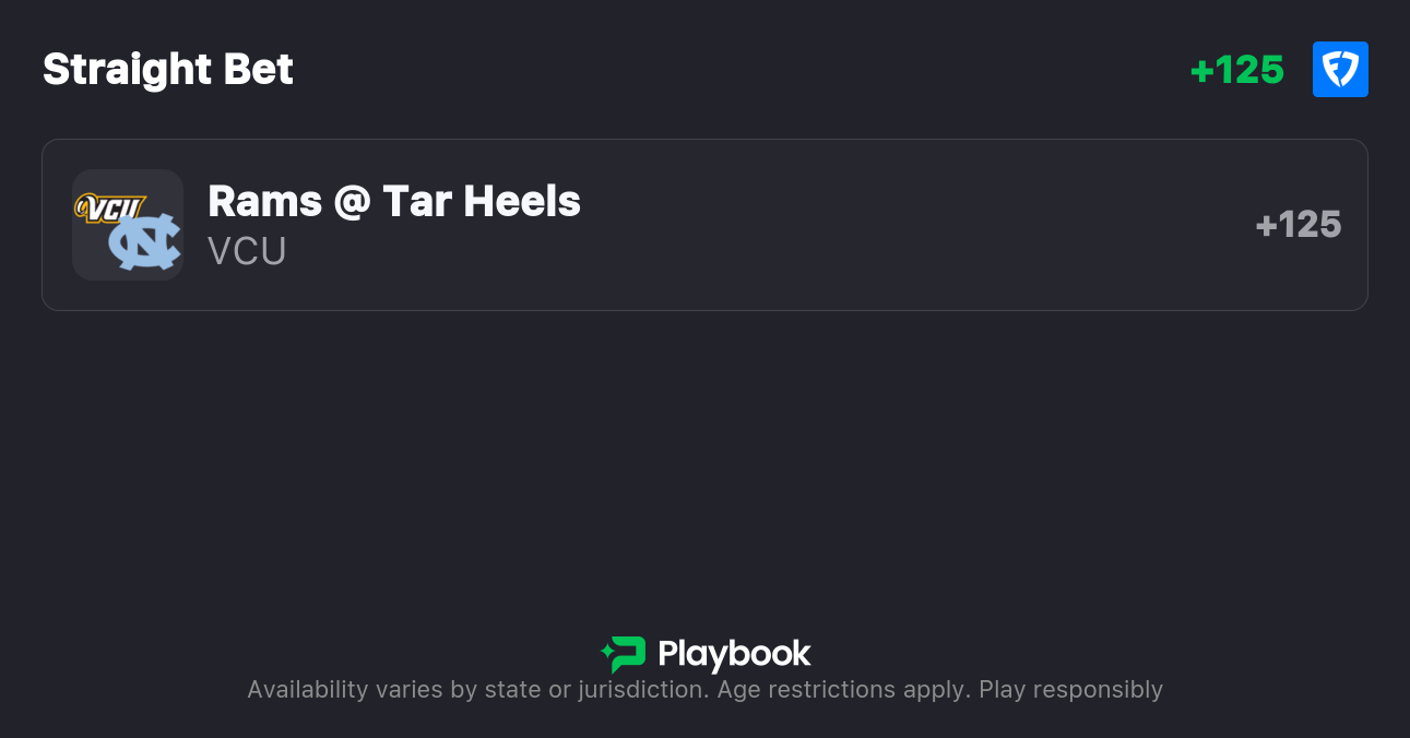 My VCU vs UNC best bet is on the Rams to win outright. For all of your college basketball bets, be sure to find the best lines by using our live NCAAB odds page.