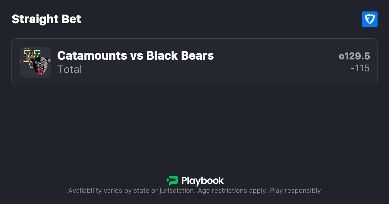 - Vermont vs Maine over/under: 129.5 points