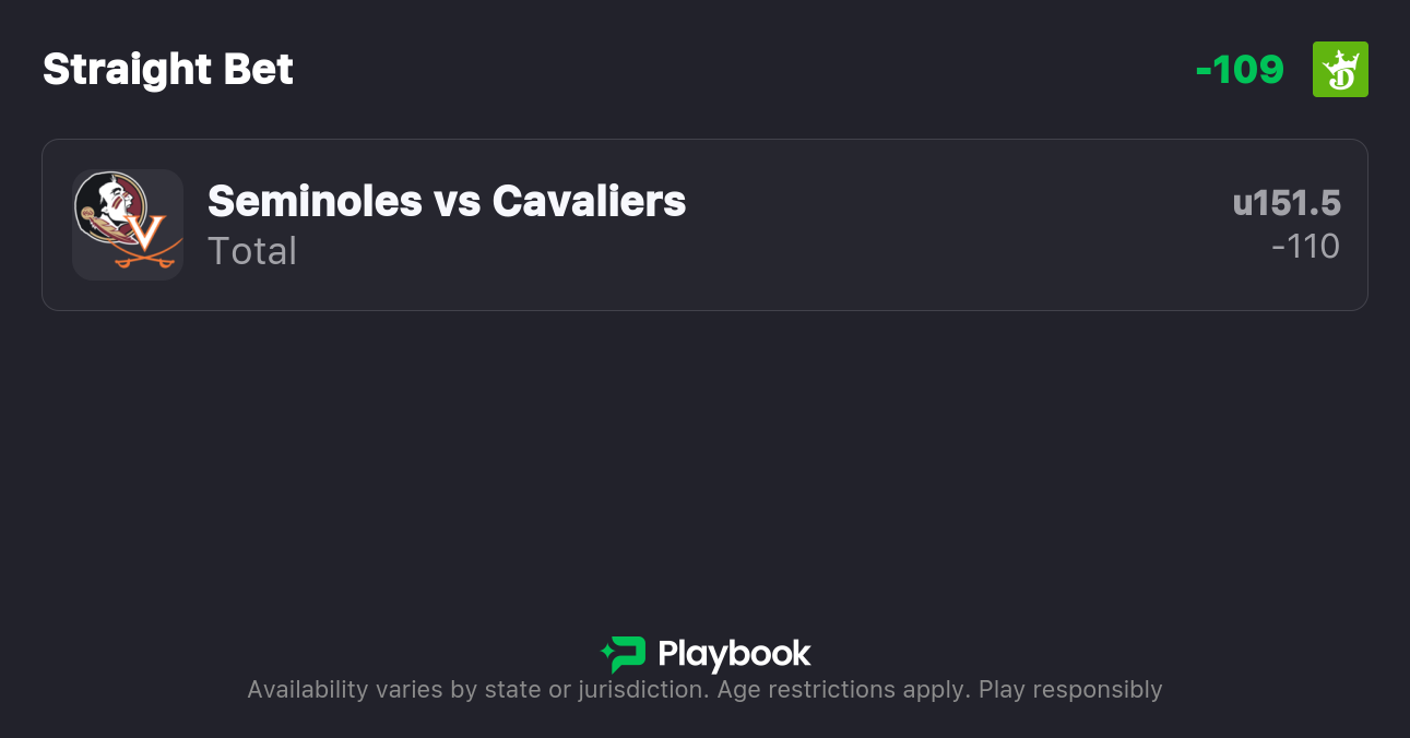 - Virginia vs Florida State Over/Under: 150.5 points