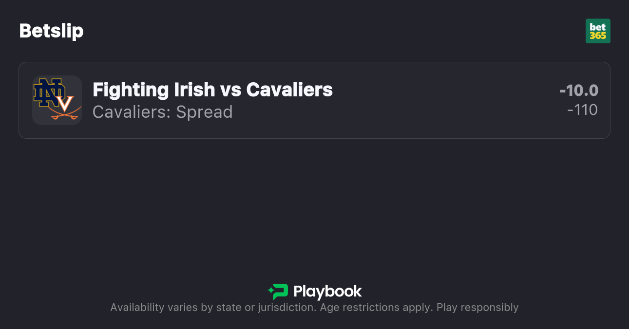 Virginia is favored by 10 points on the spread with a moneyline of -700. Notre Dame, meanwhile, enters as a +10 underdog and is +500 on the moneyline to pull off the upset. The over/under sits at 140.5 total points.