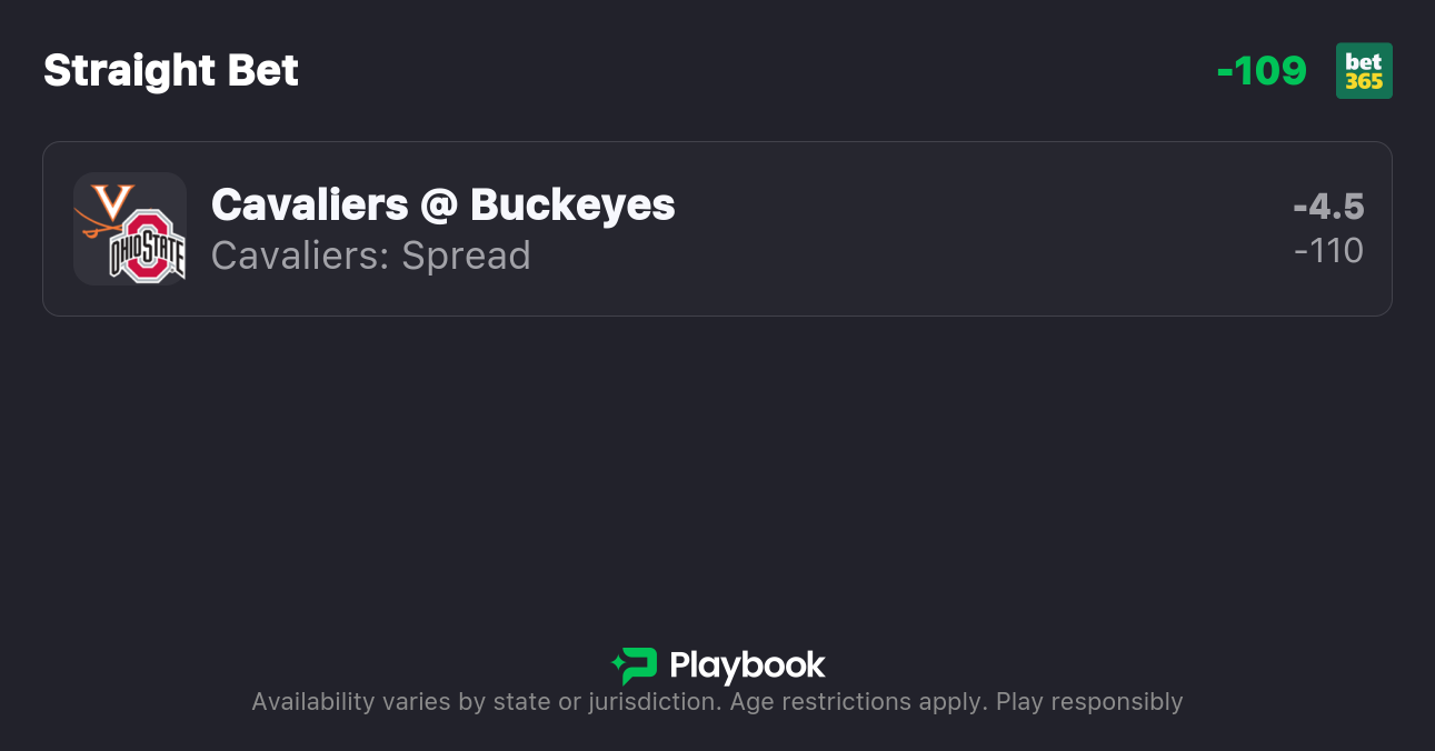 - Virginia vs Ohio State spread: Virginia -4.5, Ohio State +4.5