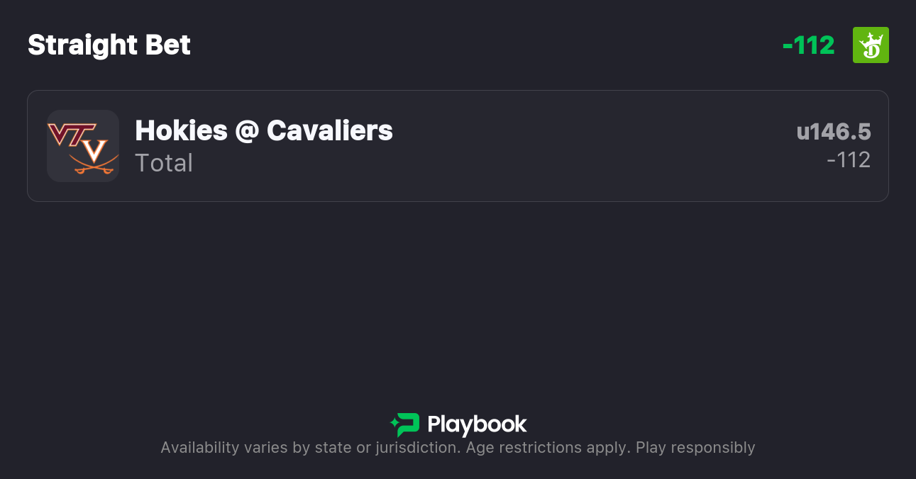 - Virginia Tech vs Virginia Over/Under: 146.5 points