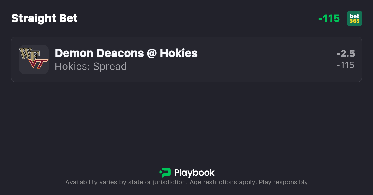 - Wake Forest vs Virginia Tech Spread: Virginia Tech -2.5, Wake Forest +2.5