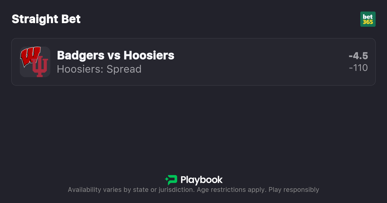 - Wisconsin vs Indiana Spread: Indiana -4.5, Wisconsin +4.5