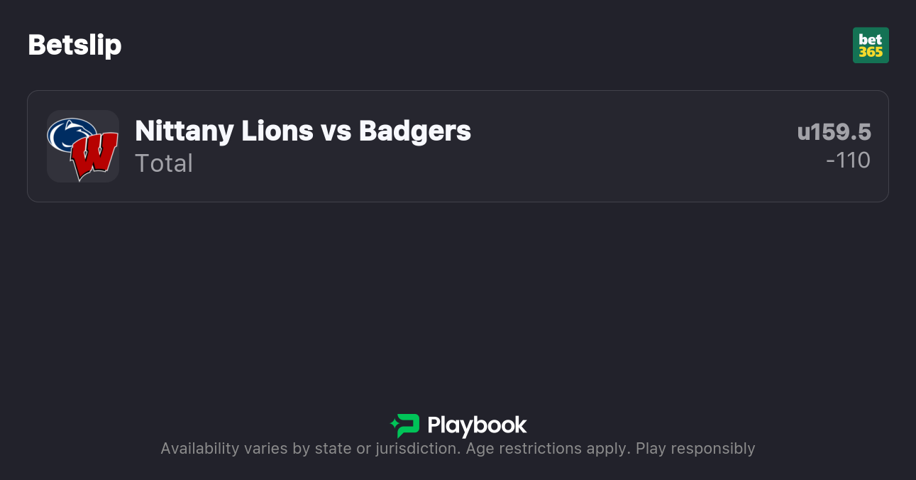 - Wisconsin vs Penn State moneyline: Wisconsin -260, Penn State +210