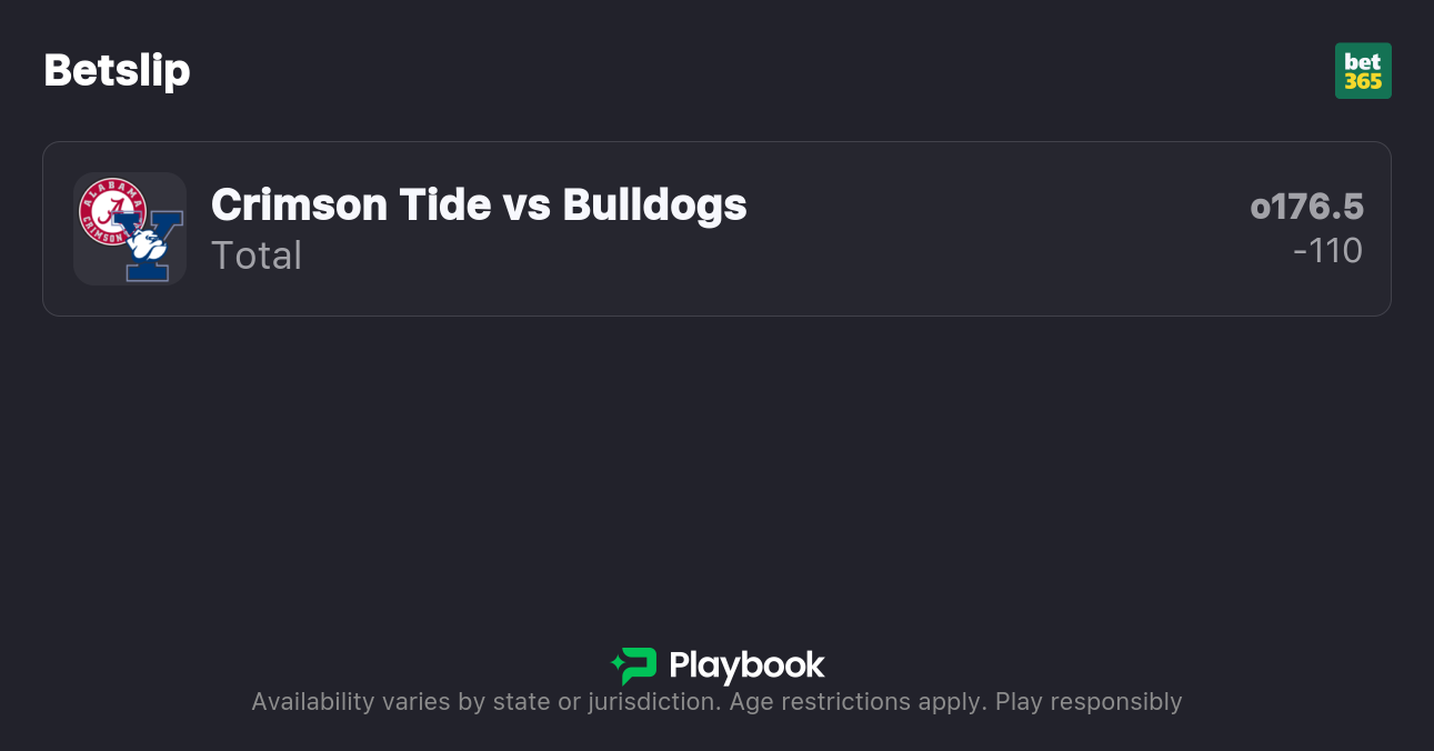 Alabama is favored by -16.5 points on the spread with a moneyline of -2500. The total is set at 176.5 points.