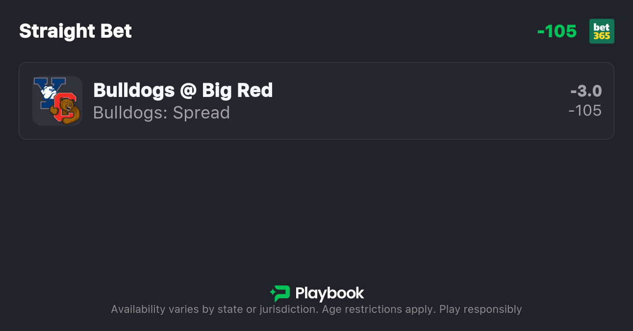 - Yale vs Cornell spread: Yale -3