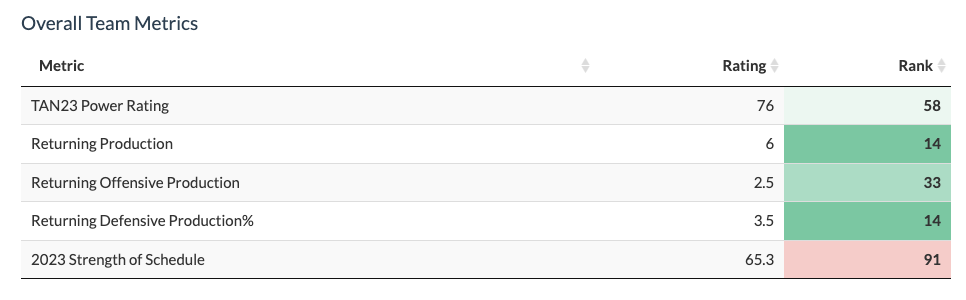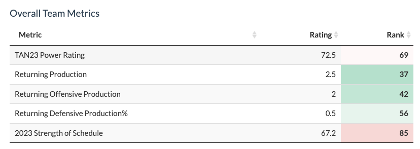 Now that we've looked at the schedule, you know where I'm going. That's right, returning production and strength of schedule.