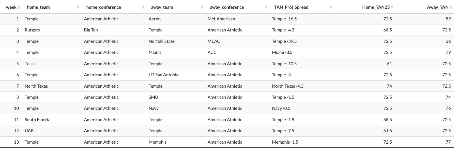 Temple is a very similar story to Navy. We already have the Owls favored in eight games, but three of those are by a field goal or less.