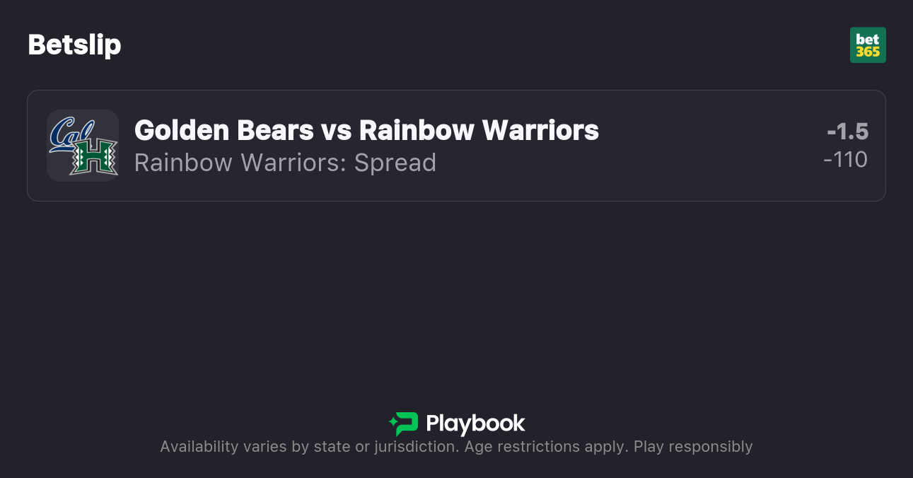 My Hawaii vs. Cal best bet is on the Rainbow Warriors to cover the spread. Find the best line available on our live NCAAF odds page.