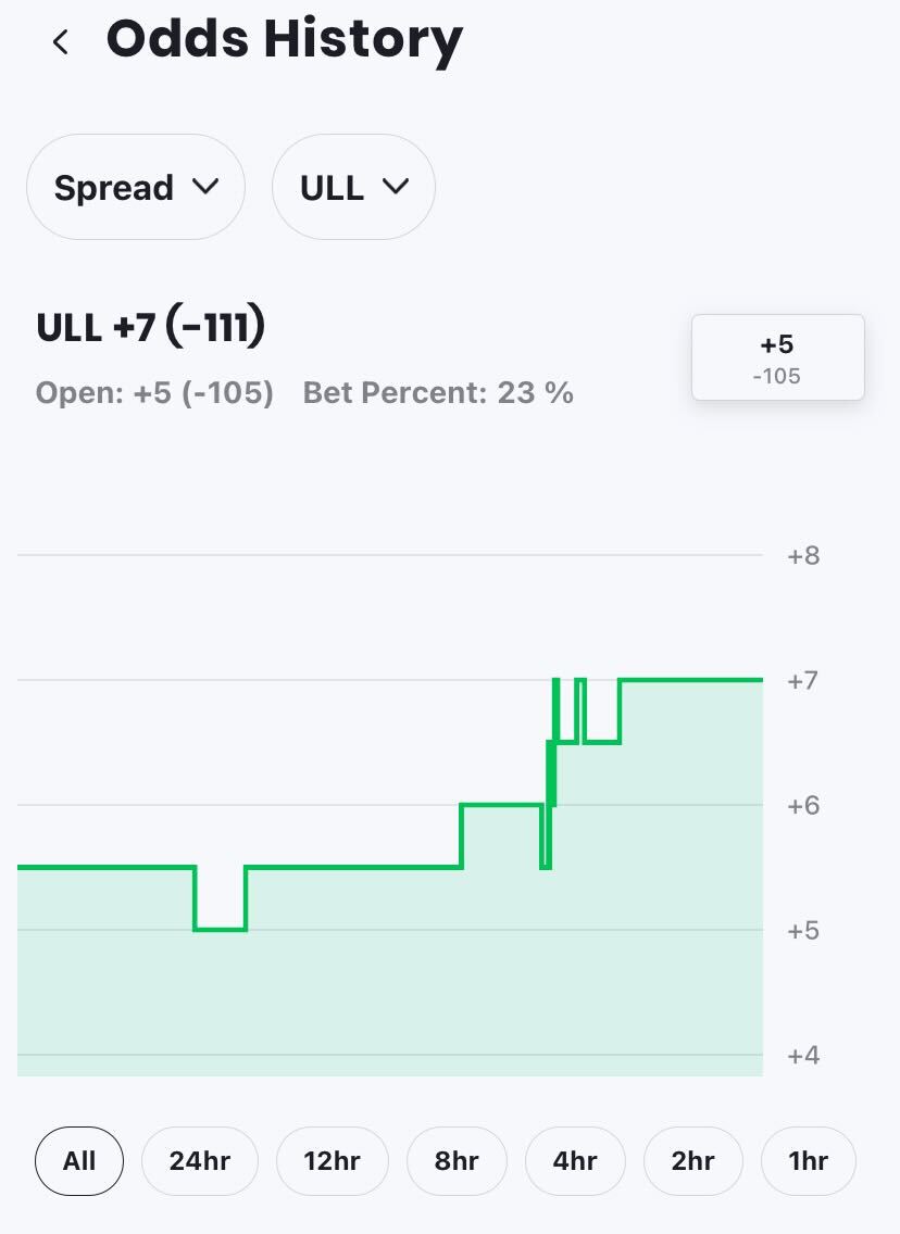 After back-to-back road losses to Rice and Louisiana Monroe, the market has reacted from opening, with 79% of the money on South Alabama at the time of writing. That has pushed Louisiana up to +7.