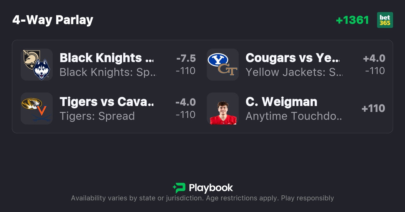 Specific betting recommendations come from the sportsbook offering preferred odds as of writing. Always shop for the best price using our NCAAF Odds page, which automatically surfaces the best lines for every game. | ||