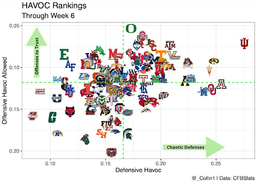 Havoc allowed, meanwhile, is a stat used to quantify an offense's ability to avoid chaos that creates a negative play. Offenses that are elite in Havoc allowed have a low number of fumbles, interceptions and tackles for loss.