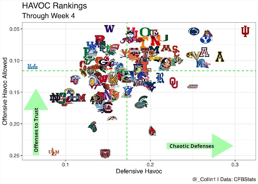 Through Week 4, Indiana continues to lead in Havoc, while Washington comes through as the best FBS offense in Havoc allowed.