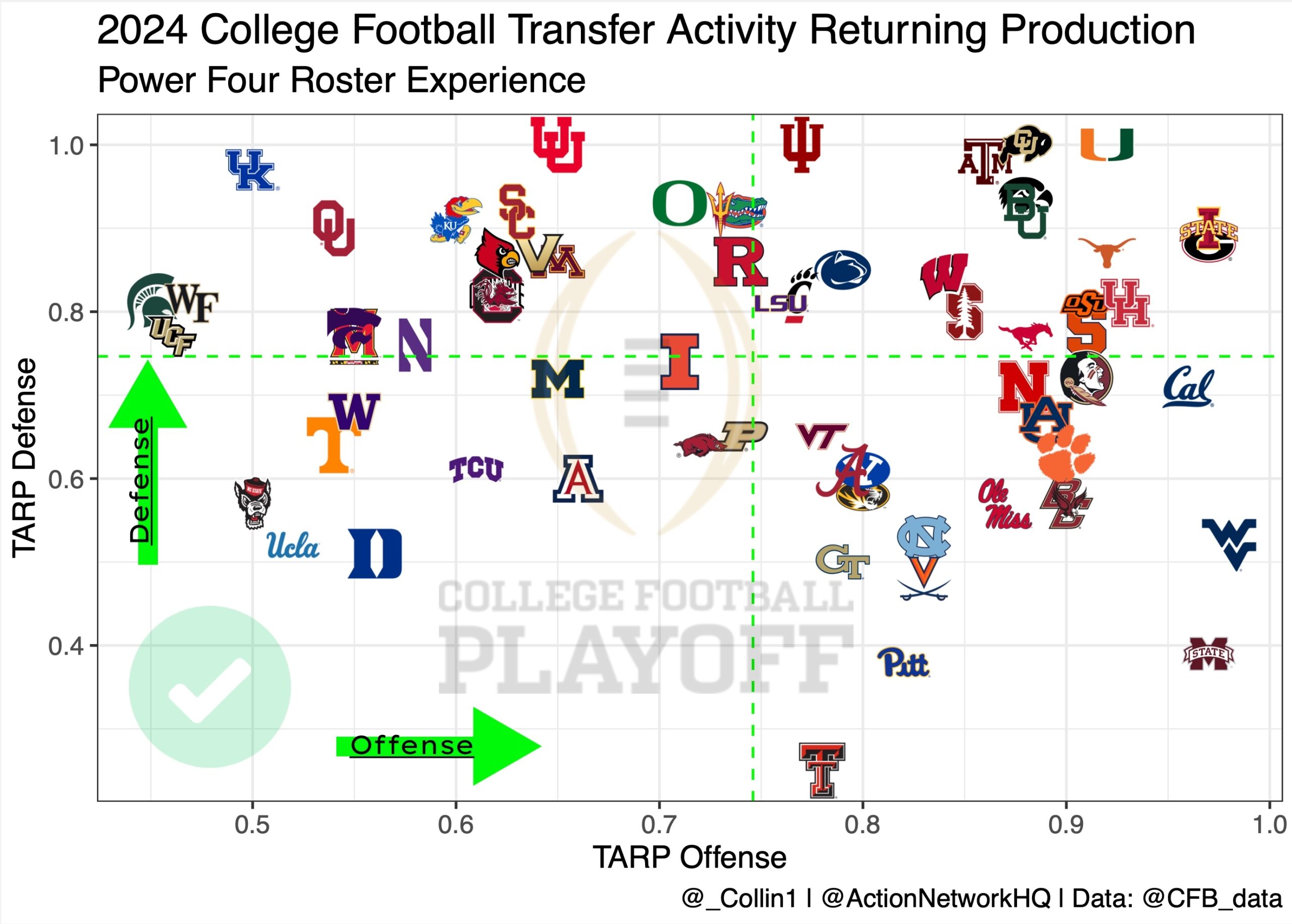 TARP — transfer activity and returning production — is the acronym Action Network uses to describe the status of a team's roster in terms of returning experience heading into fall camp.