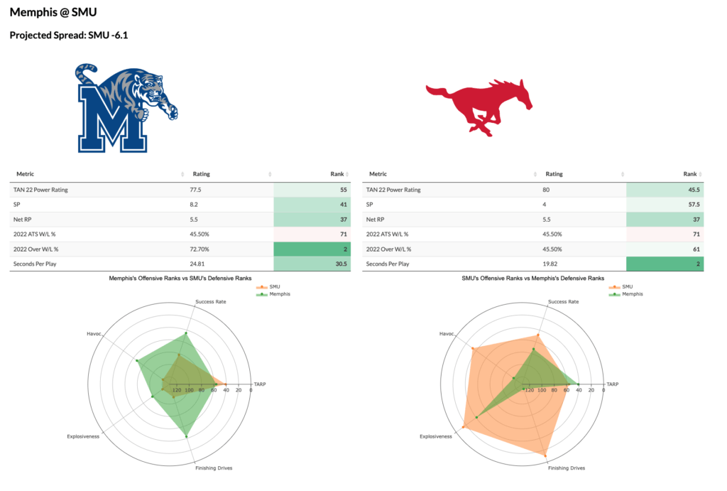 - SMU Mustangs Offense vs. Memphis Tigers Defense