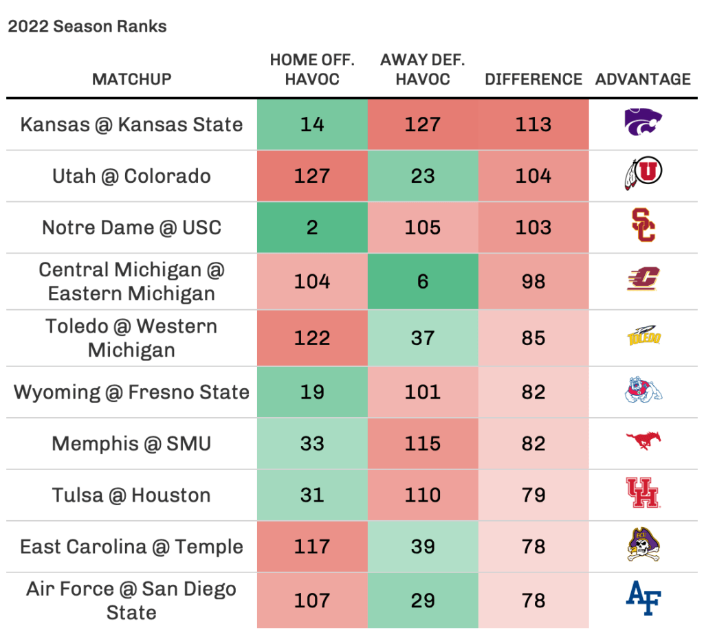 Top 3 Havoc Mismatches (Home Offense vs. Away Defense)
