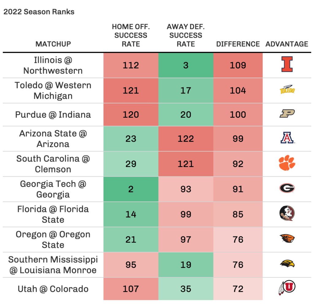 Top 3 Success Rate Mismatches (Home Offense vs. Away Defense)