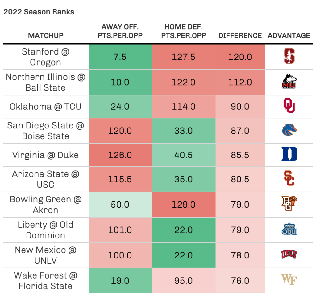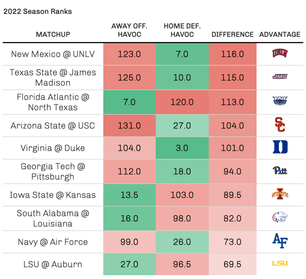 Top 3 Havoc Mismatches (Home Offense vs. Away Defense)