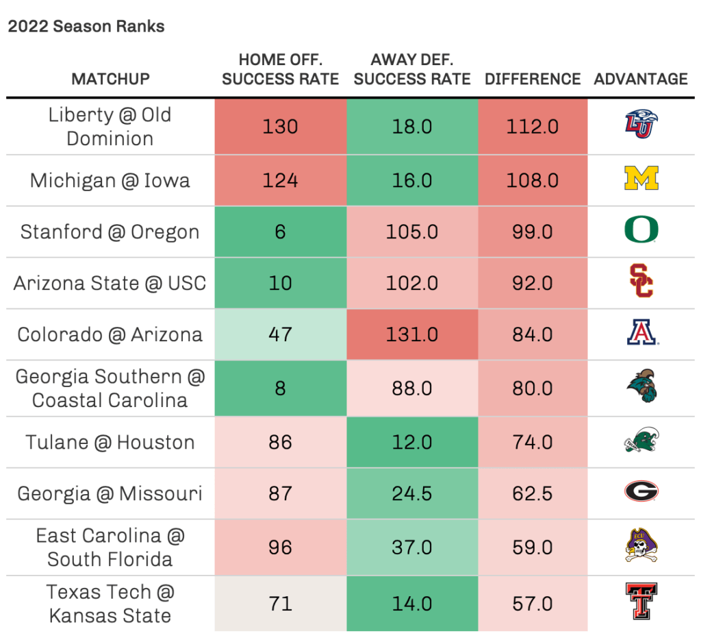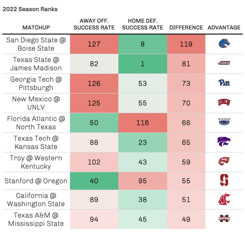 Top 3 Success Rate Mismatches (Home Offense vs. Away Defense)
