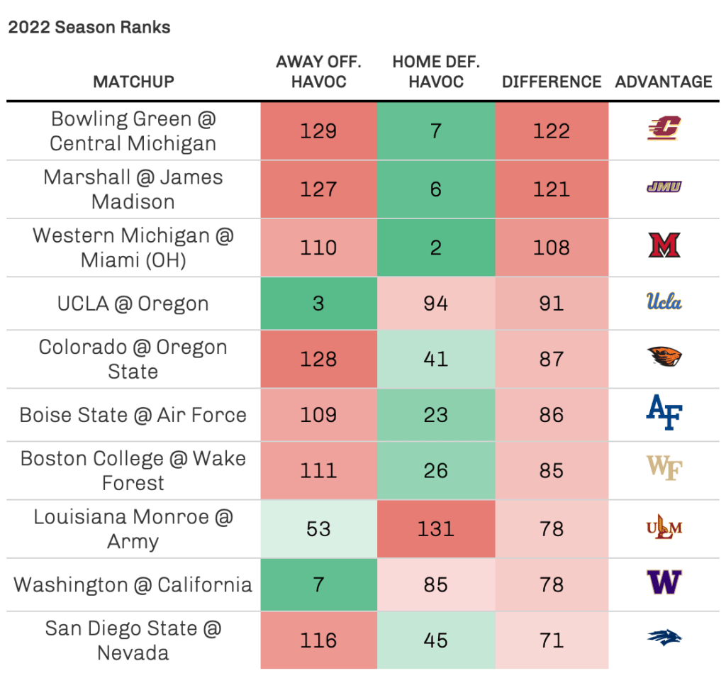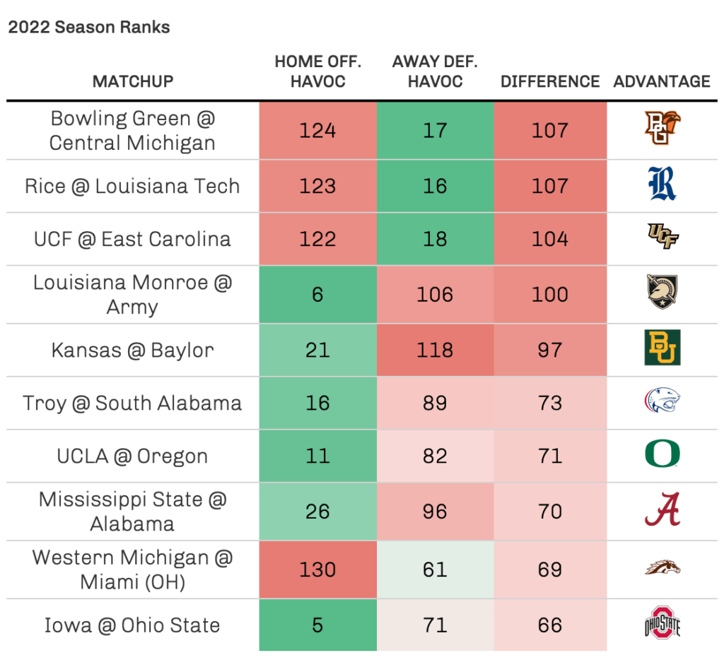 Top 3 Havoc Mismatches (Home Offense vs. Away Defense)