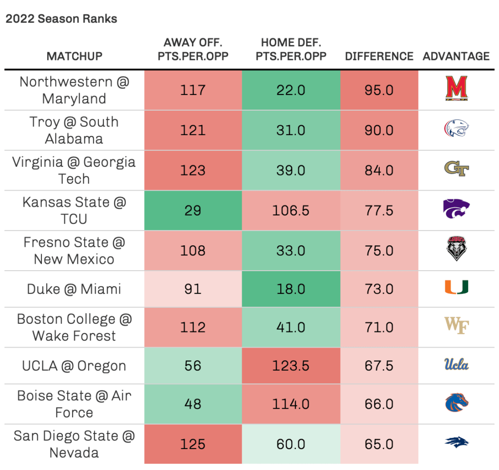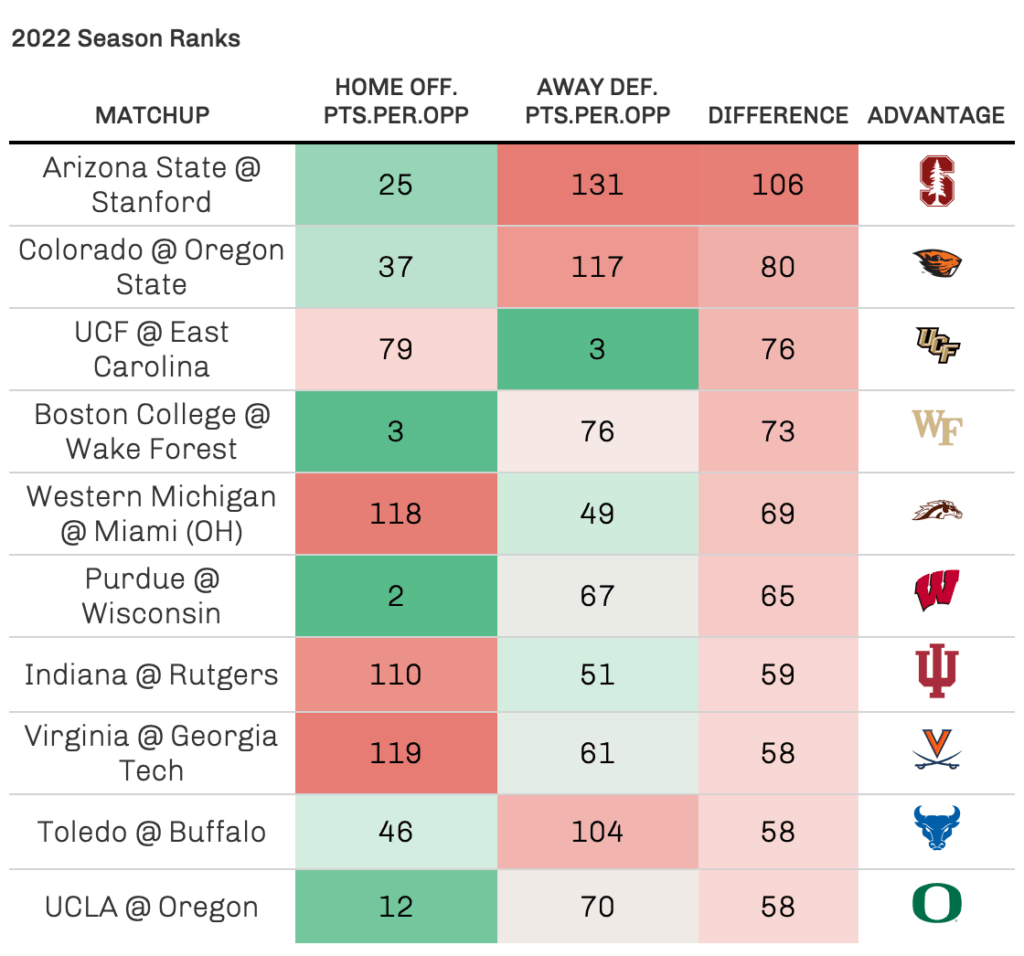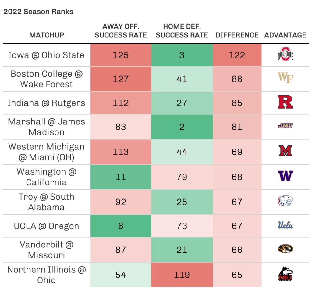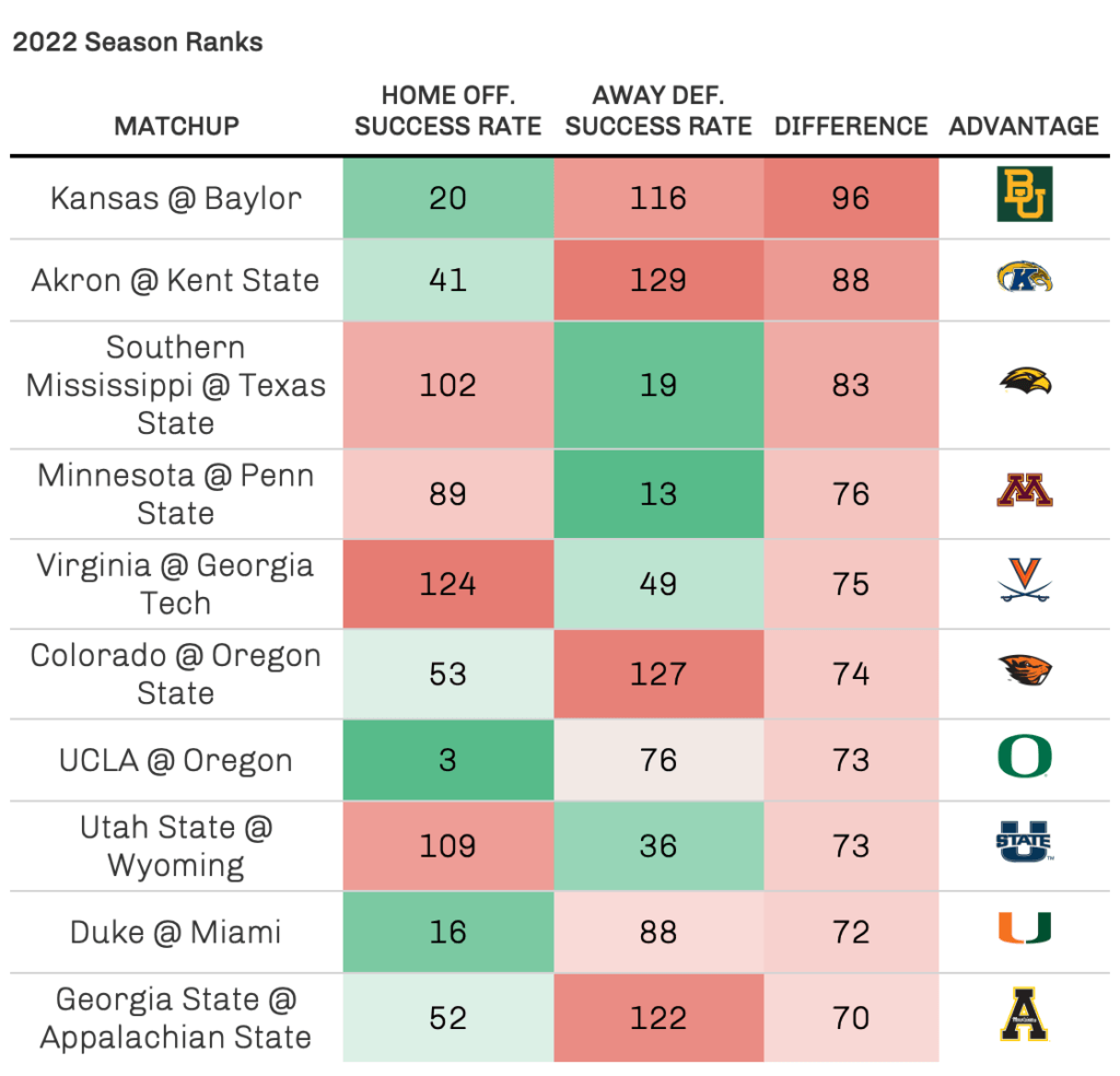 Top 3 Success Rate Mismatches (Home Offense vs. Away Defense)
