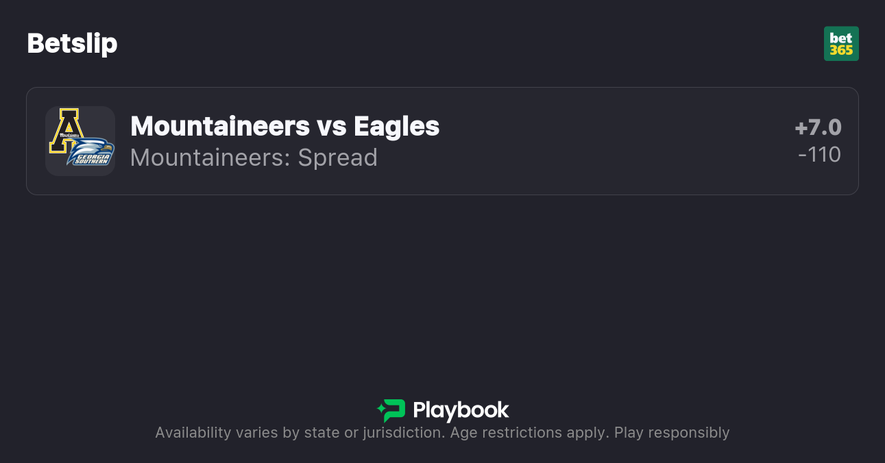 My App State vs. Georgia Southern best bet is on the Mountaineers to cover. Find the best line available on our live NCAAF odds page.