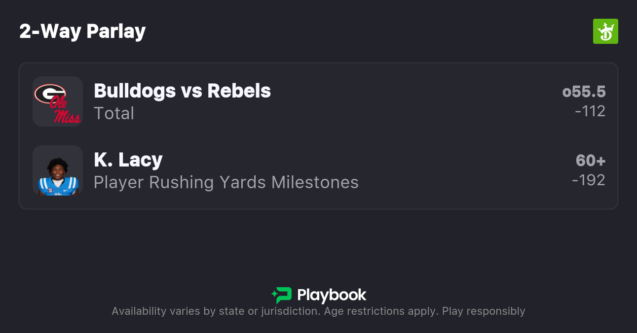I came through with a 2-leg same-game parlay for this CFP clash, featuring an over/under pick and a player prop for Ole Miss running back Kewan Lacy.