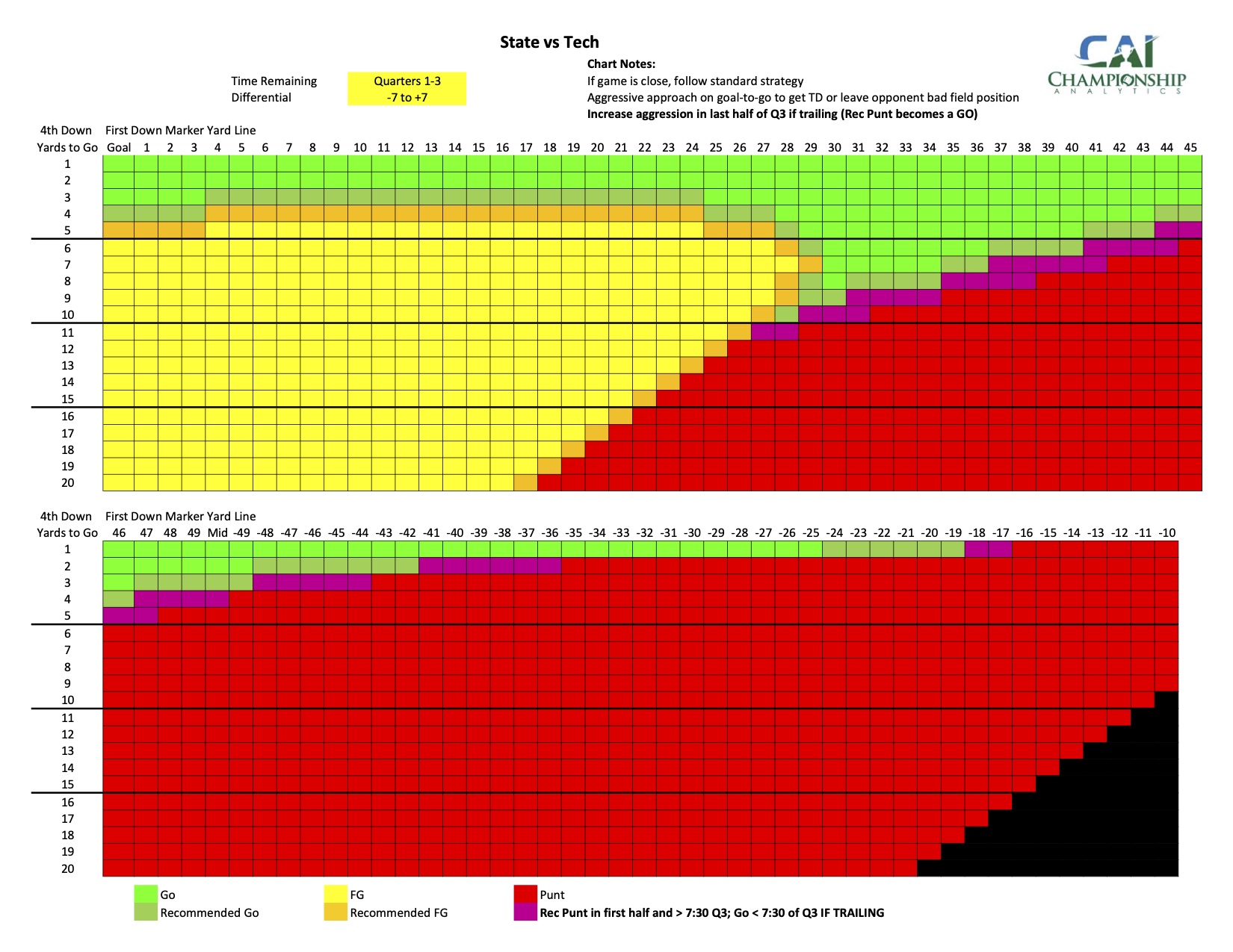 Actually, the CAI Game Book isn’t a book. It’s a series of multicolor-coded charts, customized weekly with game-management and statistically optimal recommendations for each fourth down, punt or field goal decision based on time remaining, game score and team-related facts for every conceivable situation.