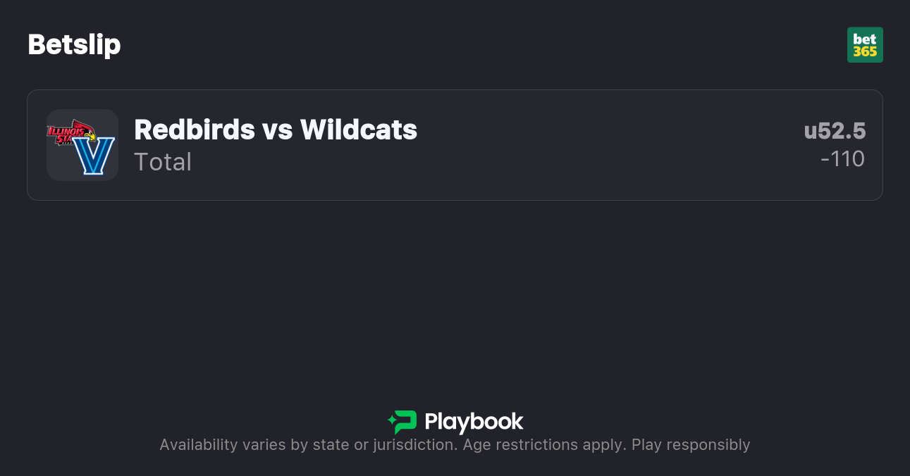 - Illinois State vs Villanova Over/Under: 52.5 Points