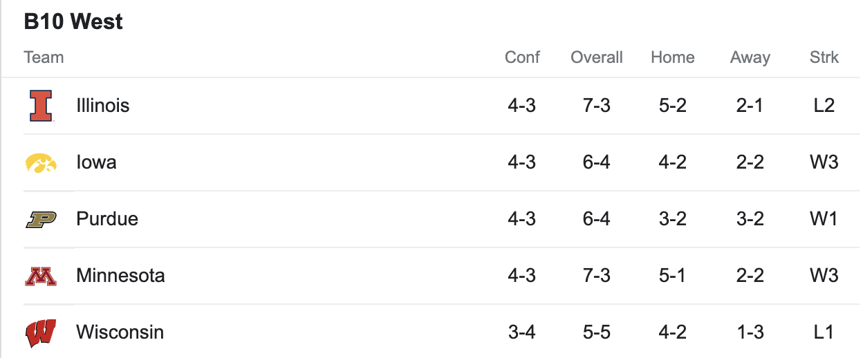 However, Illinois and Purdue hold the tiebreaker over the Gophers, and if they lose to Iowa, their hopes of winning the Big Ten West are effectively gone.