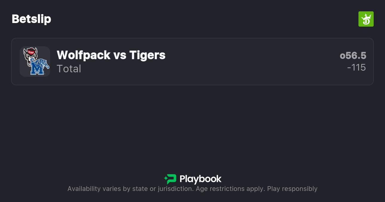 - Memphis vs NC State Over/Under: 57 Points