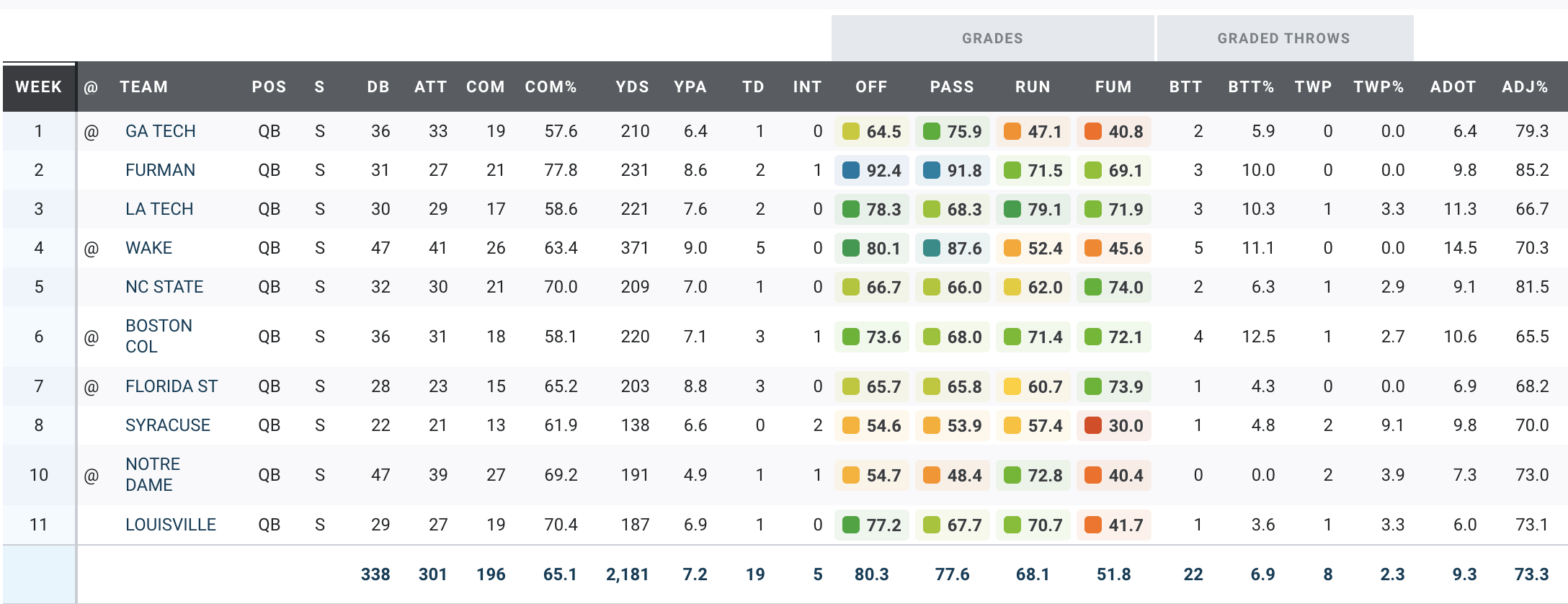 The Clemson offense has been far from elite this season, and a lot of that has to do with the play of Uiagalelei. He had an incredible game against Wake Forest and has 22 big-time throws compared to only eight turnover-worthy throws, which is all great.
