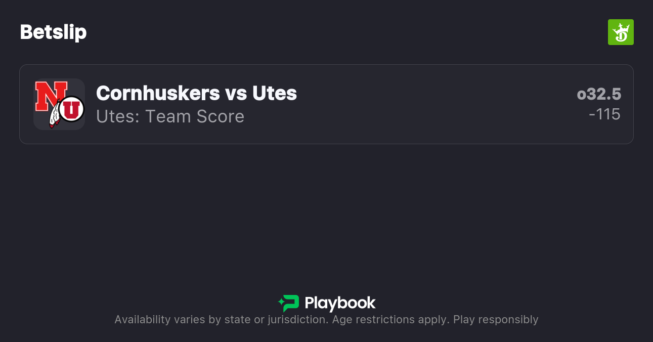 My Utah vs. Nebraska best bet is on the Utes to go over their team total. Find the best line available on our live NCAAF odds page.