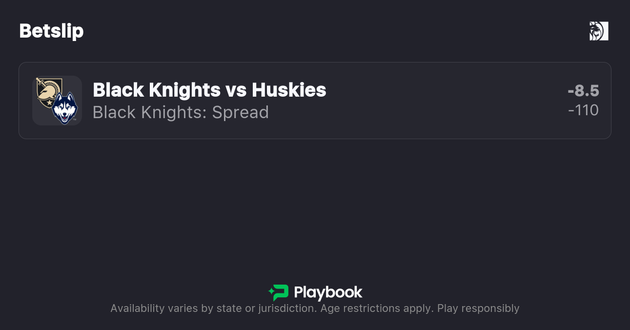 - UConn vs Army over/under: 42.5 (-110o / -110u)