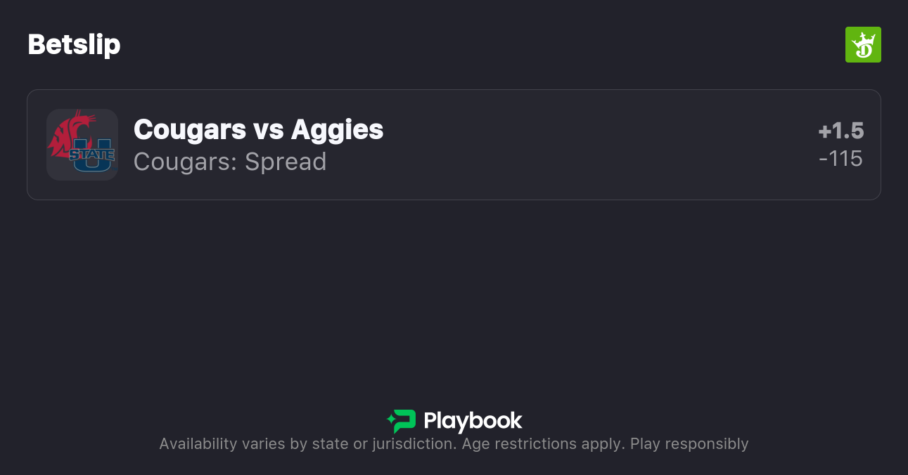 - Washington State vs. Utah State Pick: Washington State +1.5 (Play to PK)