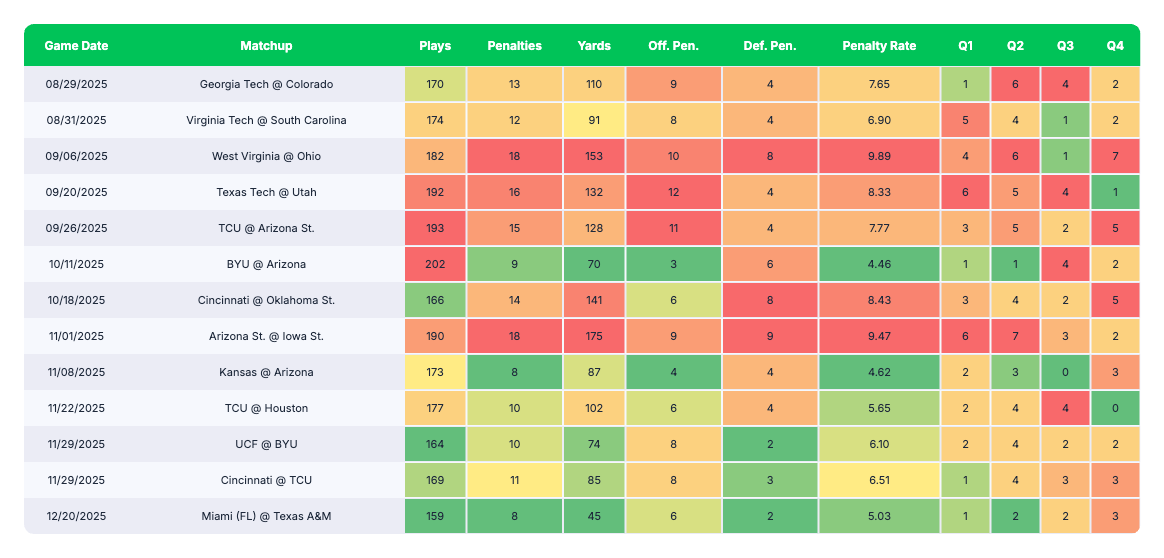 Through 13 games this season, VanderVelde has called a near-FBS average of 12.5 penalties per game.