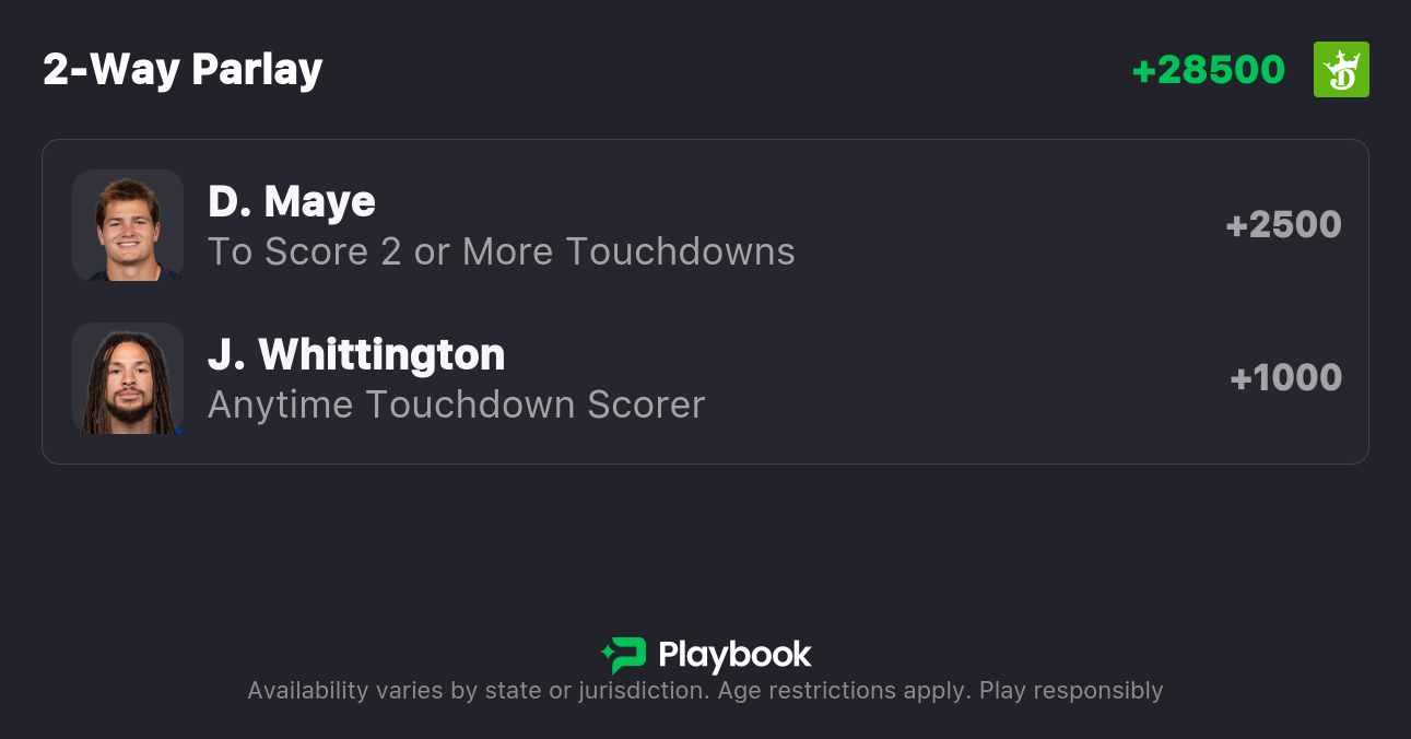 - Drake Maye 2+ Anytime Touchdowns (+2500)