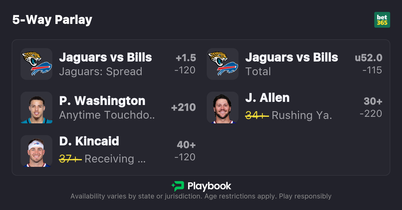 • Bills vs Jaguars Moneyline: Bills -110, Jaguars -110