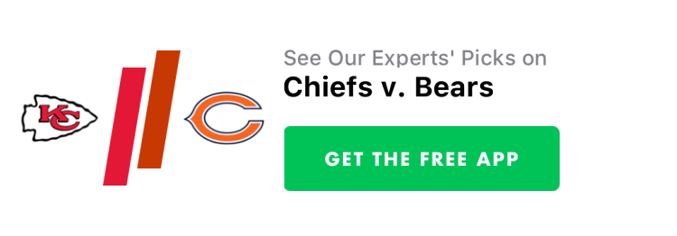 The Chiefs have a 64% chance of winning this game, according to our NFL model. The true point spread is the Chiefs -5, giving slight value to Chicago. The over/under in our model is projected at 42.8, giving slight value to the under.