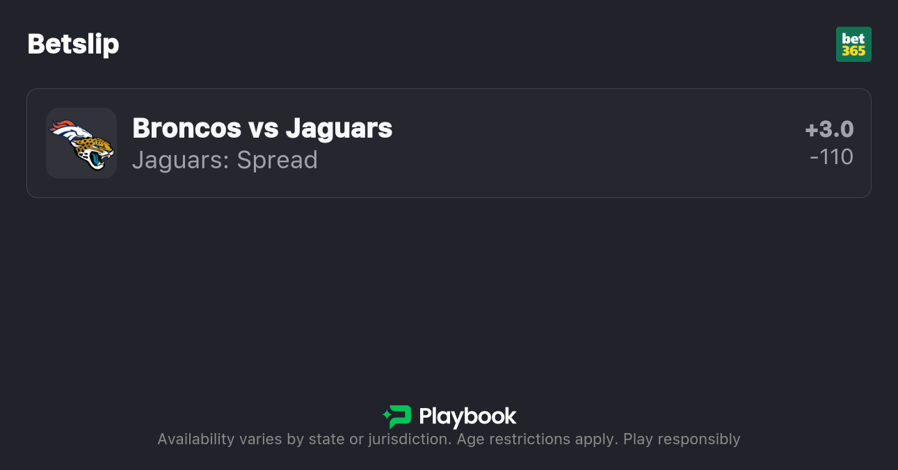 - Jaguars vs Broncos pick: Jaguars +3.5; bet to +3 (-110)
