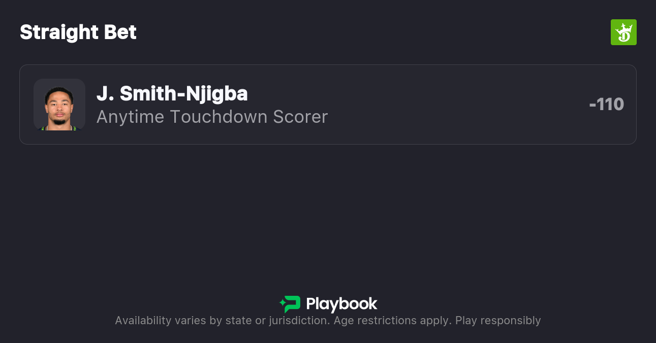 Smith-Njigba accounts for a staggering 40% of Sam Darnold’s touchdown passes, and given his performances against man coverage this season, something the Patriots really focus on, he should be poised to find the end zone.