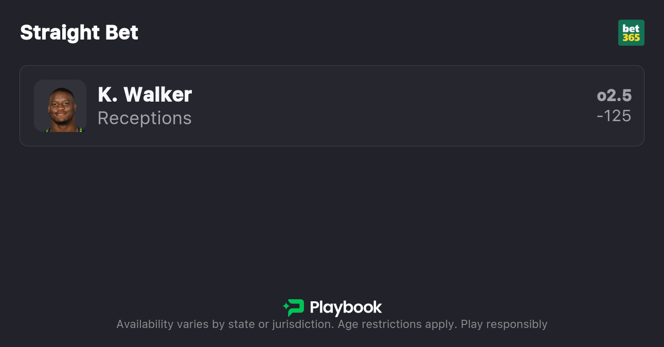 Walker's rushing yards total is one that could be worth tackling, but it’s his receptions line of 2.5 that feels like an absolute must-smash for tonight's game.