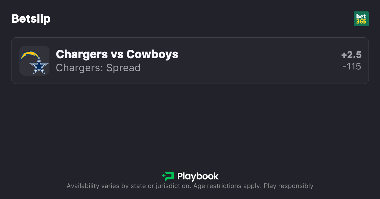 - Chargers vs Cowboys pick: Chargers +2.5