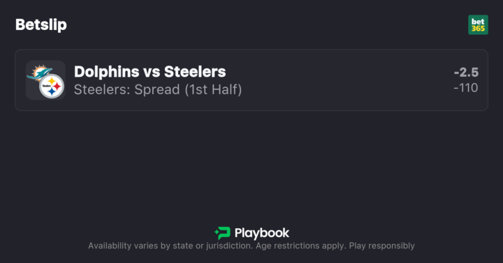 - Dolphins vs Steelers pick: Steelers First Half Spread -2.5 (-110)