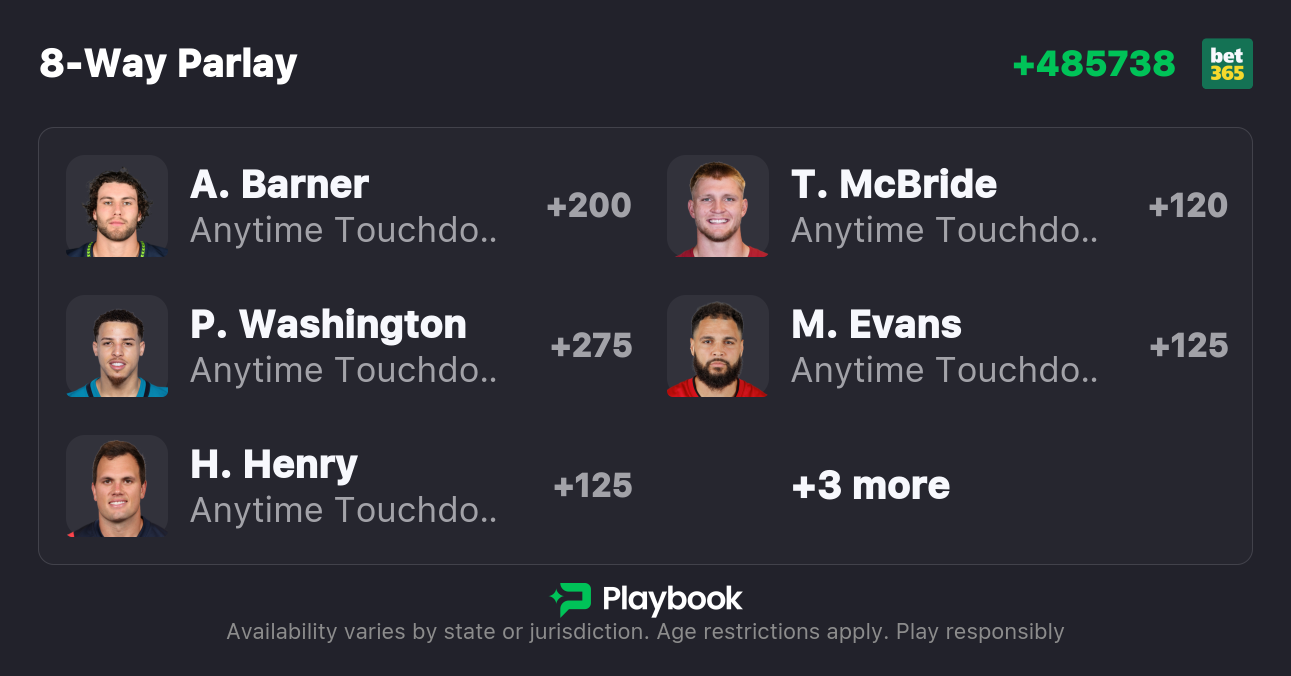 If this game goes into shootout mode, McBride might get spammed for 15+ targets, and if Ja’Marr Chase is minus-odds to score in this game, McBride should be too.