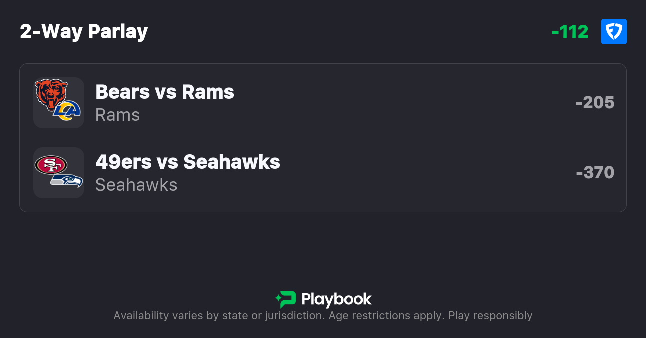 - Rams & Seahawks Moneyline Parlay (-112, FanDuel)