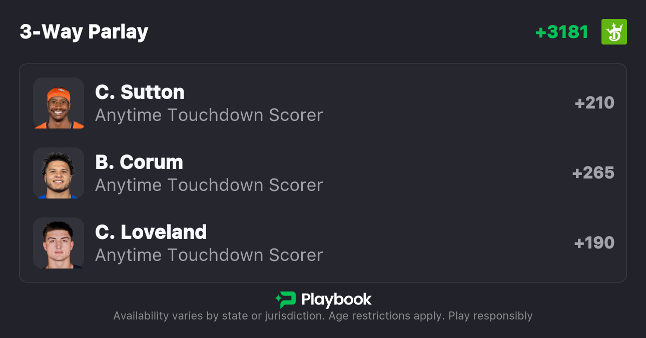 This Anytime TD parlay touches on two Divisional Round games: Bills vs Broncos on Saturday and Rams vs Bears on Sunday.